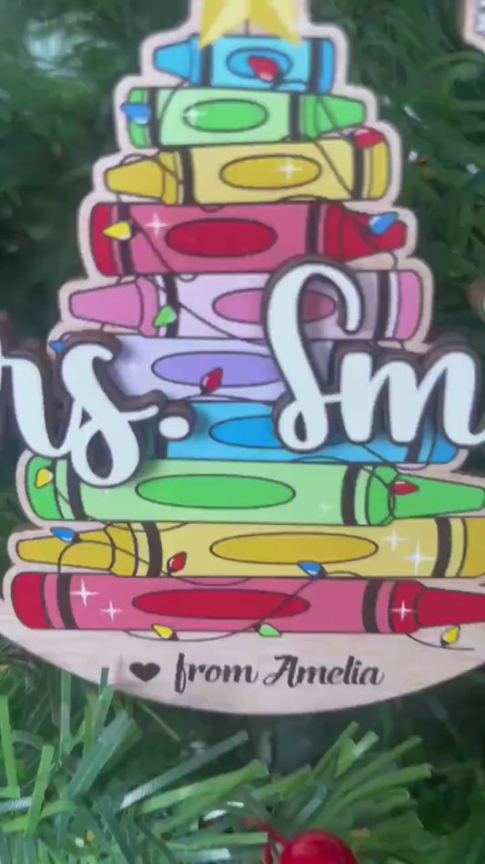 Personalized Teacher Ornament Crayon Christmas Tree, Thank You Gift, Teacher Christmas Ornament Keepsake Gift, Teacher Appreciation Gifts