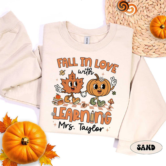 Custom Teacher Shirt Fall In Love With Learning, Teacher Pumpkin Fall Shirt Halloween Spooky, Teacher Thanksgiving Sweatshirt, Teacher Gifts